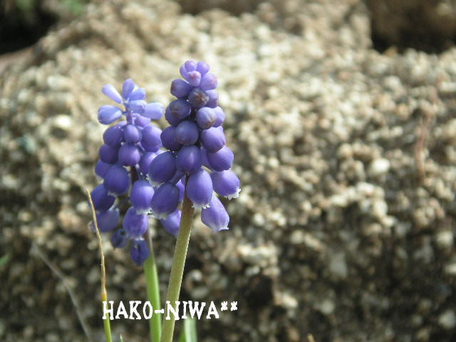 ムスカリのコボレちゃん。。。謎な所からも生えてます(笑っ