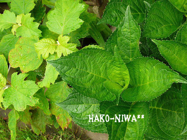 ブルーの紫陽花は花がまだですねぇ~チラッと色が見える感じ