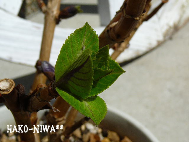 アジサイ達も芽を出しはじめましたので 日当たりの良い場所に移動です