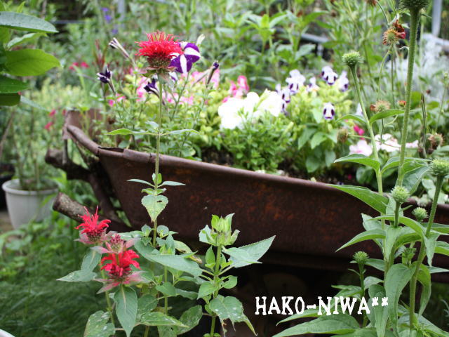 手前には エキナセアとモルダナの鉢と こんなモノにも植えちゃってます
