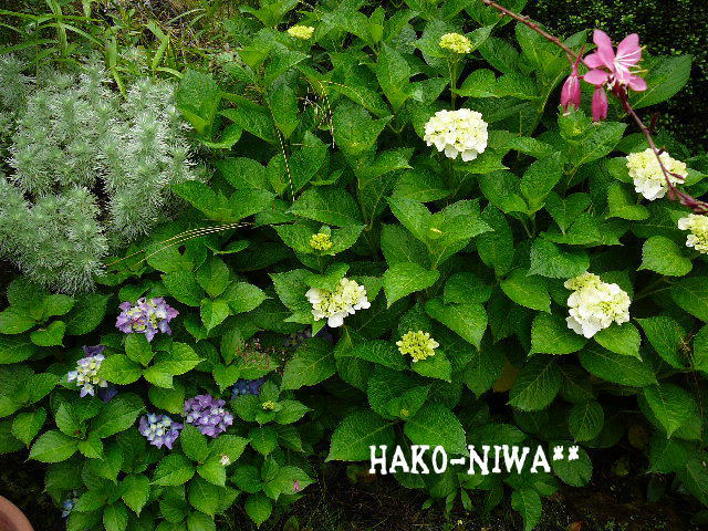 山アジサイ と ブルーのアジサイ