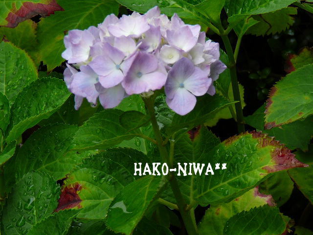 ブルーの紫陽花は花がまだですねぇ~チラッと色が見える感じ
