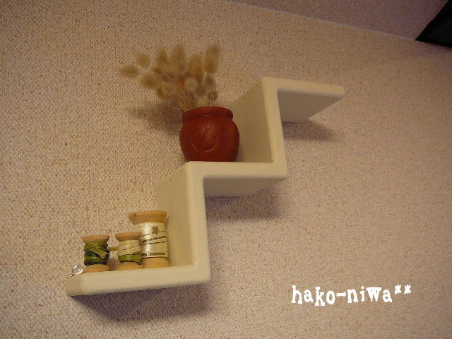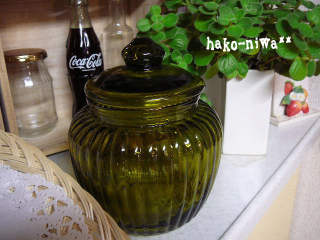 二番目の棚は こんな感じぃぃ~ 前に作ったカエルさんと緑の瓶にしてみました