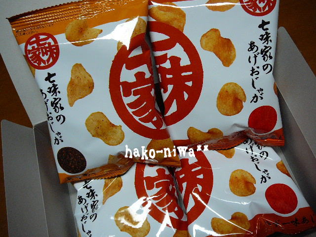 いわゆる ポテトチップスですが。。。ゆず一味と七味のお味です