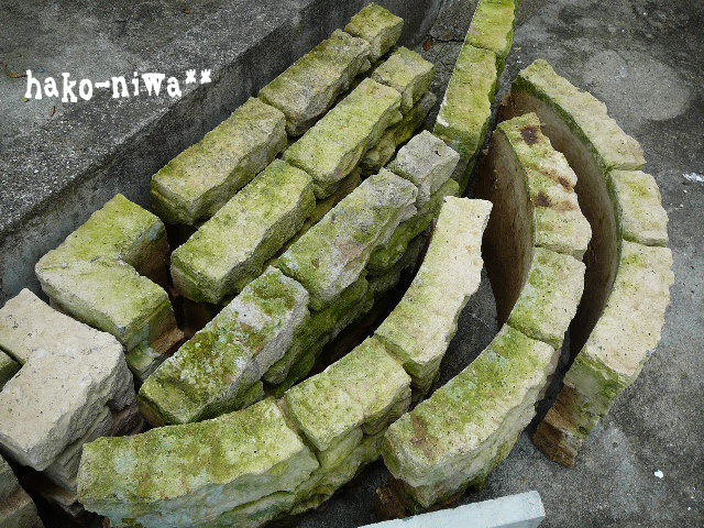 花壇の枠石を洗って干してます 雨が降ってもいいんだけどね